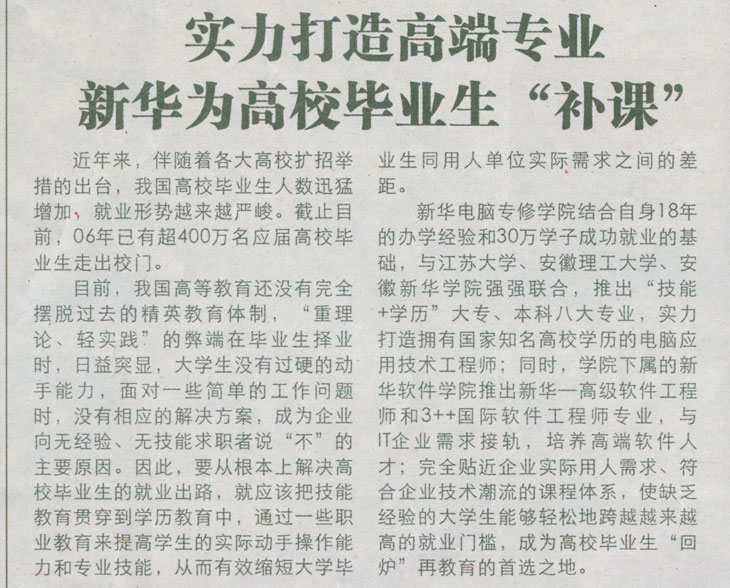 當前位置:首頁 > 新聞中心 > 青春新華 > 《合肥晚報》報道:實力打造高端專業(yè)新華為高校畢業(yè)生“補課”