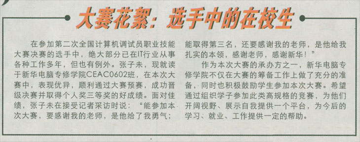 當前位置:首頁 > 新聞中心 > 青春新華 > 《合肥晚報》報道:全國第二屆計算機調試員大賽比賽花絮