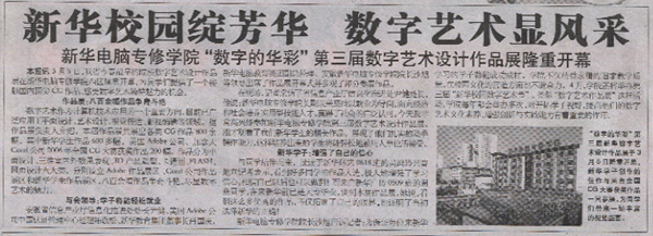 3月8日,《合肥晚報》報道:“新華校園綻芳華 數字藝術顯風采—新華電腦專修學院‘數字的華彩’第三屆數字藝術設計作品展隆重開幕”,敬請關注!
