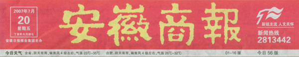 7月20日,《安徽商報》報道:“選擇新華,就是選擇IT時代最好的麥穗! ”,敬請關注!