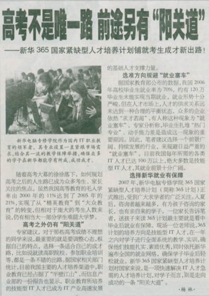 7月26日,《合肥晚報》報道:“高考不是唯一路,前途另有‘陽關道’——新華365國家緊缺型人才培養計劃鋪就考生成才新出路 ”,敬請關注!