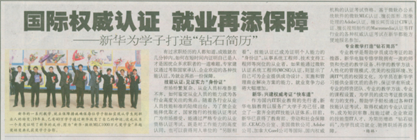 當前位置:首頁 > 新聞中心 > 青春新華 > 《合肥晚報》報道:國際權威認證 就業再添保障
