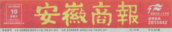 《安徽商報》報頭《安徽商報》報道新聞頁面截圖