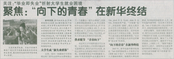 9月14日,《安徽商報(bào)》報(bào)道:“關(guān)注:‘畢業(yè)即失業(yè)’折射大學(xué)生就業(yè)困境——聚焦:‘向下的青春’在新華終結(jié)業(yè)”,敬請(qǐng)關(guān)注!
