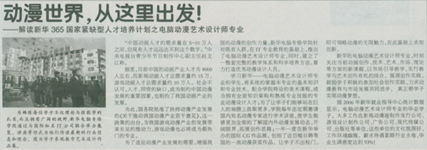 9月25日,《安徽商報(bào)》報(bào)道:“動(dòng)漫世界,從這里出發(fā)——解讀新華365國家緊缺型人才培養(yǎng)計(jì)劃之電腦動(dòng)漫藝術(shù)設(shè)計(jì)師專業(yè)”,敬請(qǐng)關(guān)注!