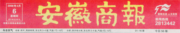 《安徽商報》報頭《安徽商報》報道新聞頁面截圖