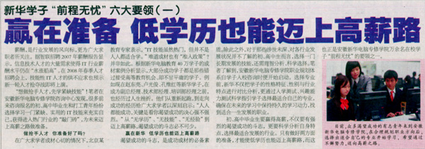 當前位置:首頁 > 新聞中心 > 青春新華 > 《合肥晚報》報道:贏在準備 低學歷也能邁上高薪路