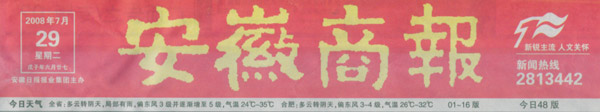 《安徽商報》報頭 《安徽商報》報道新聞頁面截圖