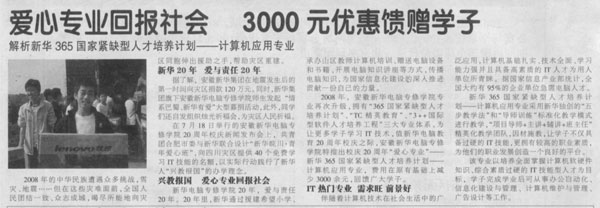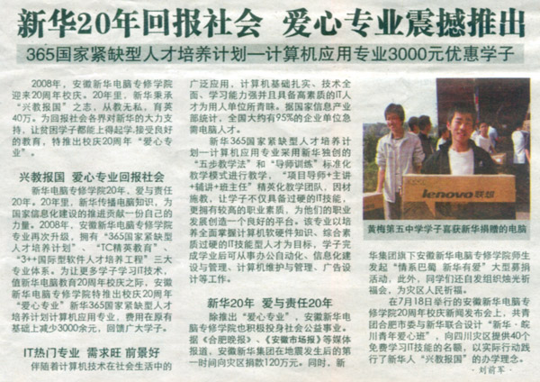 當前位置:首頁 > 新聞中心 > 青春新華 > 安徽市場報報道:新華20年回報社會 愛心專業(yè)震撼推出
