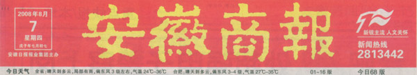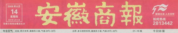 《安徽商報》報頭 《安徽商報》報道新聞頁面截圖