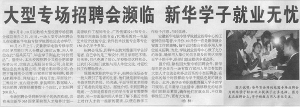 當前位置:首頁 > 新聞中心 > 青春新華 > 《合肥晚報》報道:大型專場招聘會頻臨 新華學子就業無憂