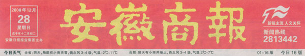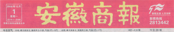 《安徽商報》報頭 《安徽商報》報道新聞頁面截圖