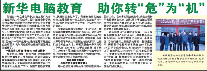 2月9日,《合肥晚報》報道:“新華電腦教育 助你轉“!睘椤皺C””,敬請關注!