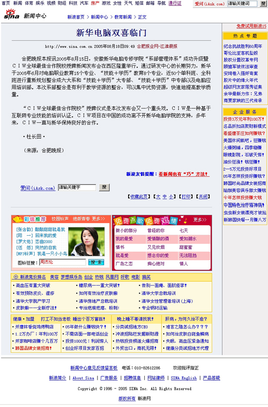 新浪網鏈接:http://news.sina.com.cn/e/2005-08-18/09496724167s.shtml