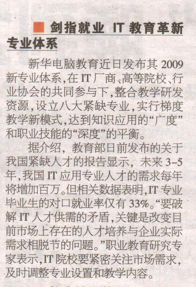 當前位置:首頁 > 新聞中心 > 青春新華 > 《參考消息》報道:劍指就業(yè) IT教育革新專業(yè)體系