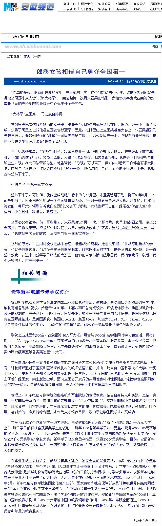 當前位置:首頁 > 新聞中心 > 青春新華 > 新華網報道我院杰出校友朱亞男就業事跡