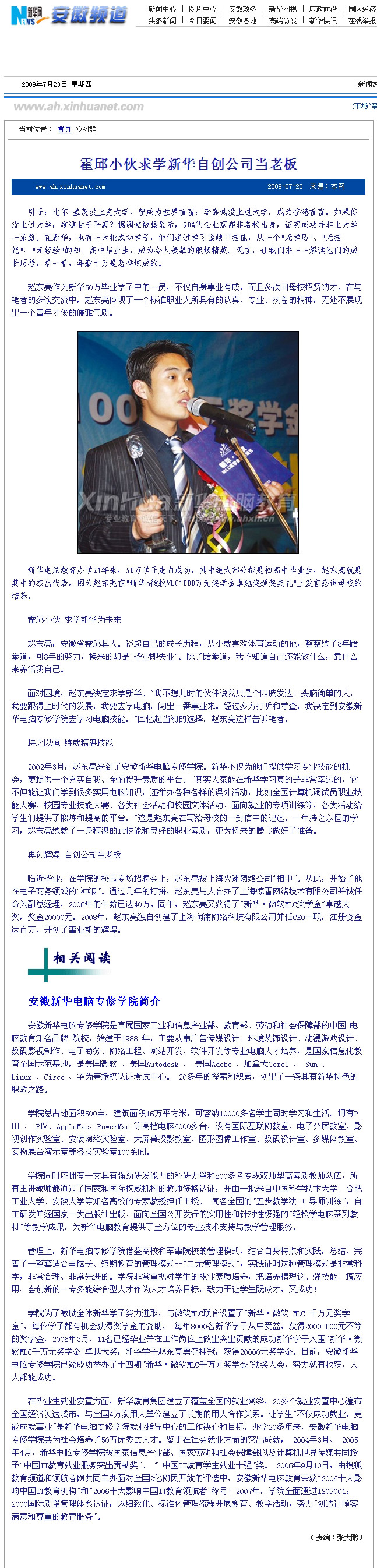 當前位置:首頁 > 新聞中心 > 青春新華 > 新華網報道我院杰出校友趙東亮優秀事跡