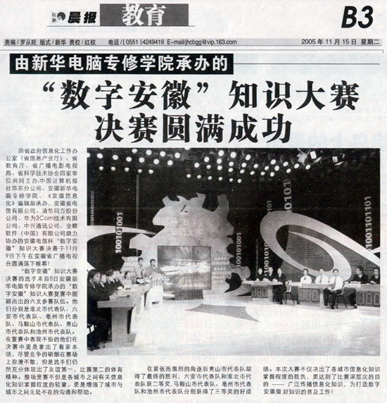 11月15日,《江淮晨報》報道“由安徽新華電腦專修學院懲辦的數字知識大賽決賽圓滿成功”的新聞并做了詳細報道,敬請關注!