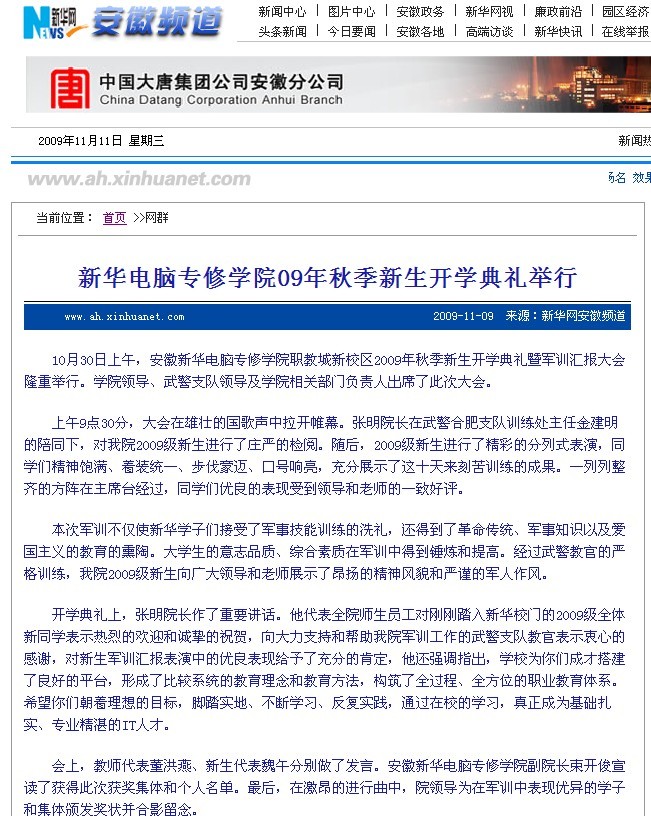 當前位置:首頁 > 新聞中心 > 青春新華 > 新華網報道我院09秋季新生開學典禮