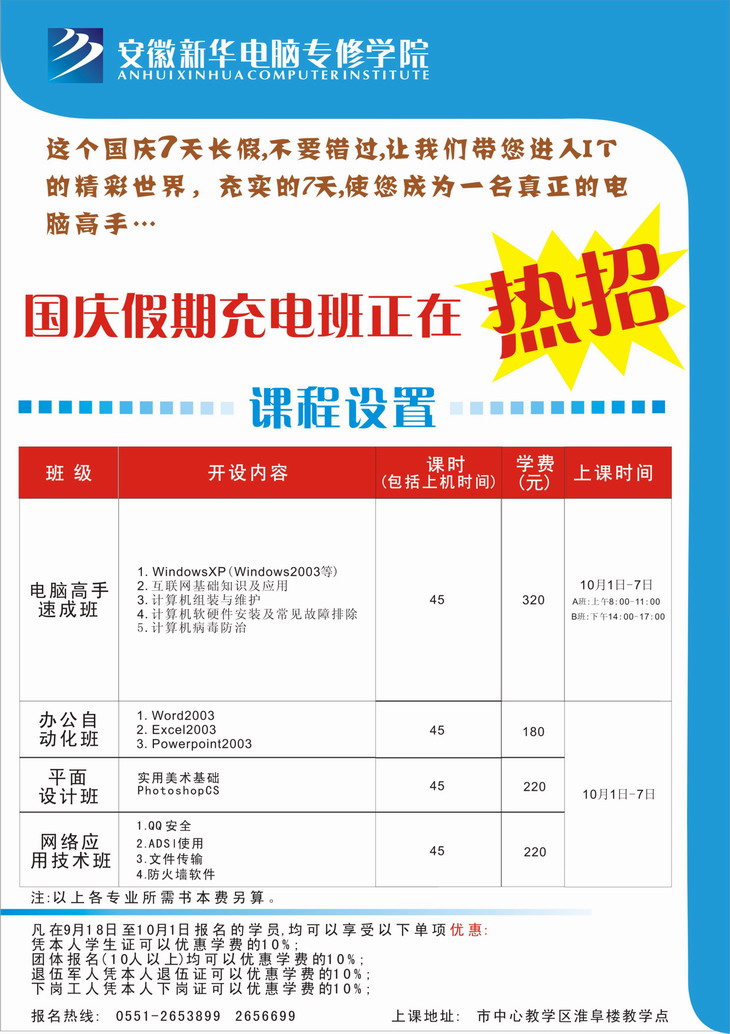 當前位置:首頁 > 新聞中心 > 通知通告 > 國慶假期充電班正在熱招
