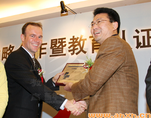10月18日,“Corel&Hope軟件業務戰略合作暨教育認證授權新聞發布會”在北京隆重召開。安徽新華電腦專修學院成為Corel新認證體系第一批授權培訓中心。加拿大Corel公司亞太區總裁Gavin Watson先生和Corel中國區總經理Philip Zhao先生親自為沙旭院長授牌,沙旭院長作為應邀貴賓就座于前排,并作為授權機構代表在主席臺發言。