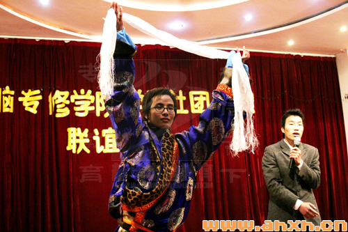 這位新華學子來自西藏,給同學們帶來了臧族的舞蹈和家鄉的熱情