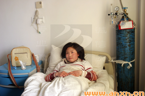 被救女子章麗在病床上