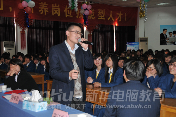 劉亮是新華上海校友會的會長,也是眾多新華校友心目中的榜樣。他年薪百萬的傳奇故事和不斷探索的精神,一直激勵著新華學子們努力學習。母校對于他來說除了親切更多的是熟悉,他見證了安徽新華電腦專修學院的每一步發展,從新專業升級到新校區落成,他說自己一直關注著母校的發展。這種特殊的情感源于他是新華人,也源于他現在的公司里有90%的員工都來畢業于新華。報告會上,他多次動情的話語引來學弟學妹們雷鳴般的掌聲,而上海校友會成員高喊的一句“一切為了校友”更是讓掌聲經久不息!