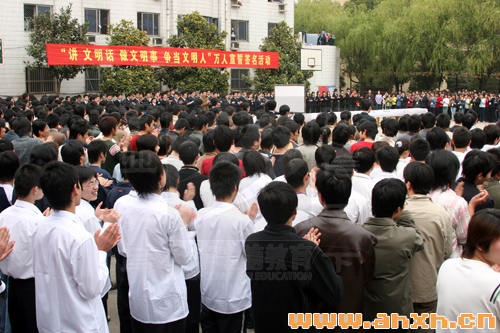 辦學18年來,安徽新華電腦專修學院一直致力于打造綠色的校園、文明的校園、IT的校園,值文明禮貌月之際,學院南區開展了“講文明話,做文明事,爭當文明人”萬人簽名活動,此舉旨在展現新華學子的精神文明風貌,倡導文明言行,營造良好的學習和生活環境。