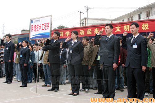新華學子宣誓:我們是新華電腦專修學院南區,我們要虛心進取,創優異成績;迎難而上,跨嶄新臺階!
