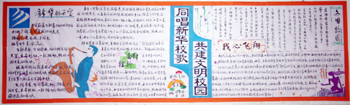 本次“墻報之星”評選活動以“同唱新華校歌,共建文明校園”為主題,由學生自主創意,自由設計,在各校區間引起強烈的反響,同學們紛紛表示,這樣的活動讓他們加強了彼此間的交流與學習,鍛練了他們團結協作能力,還提高了他們的審美觀,讓他們體會到創作的激情。