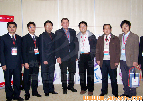 Adobe中國區總經理皮卓丁先生為安徽新華電腦專修學院院長沙旭頒發“2005年度Adobe最佳數字藝術中心”獎并表示祝賀