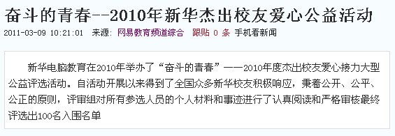 奮斗的青春--2010年杰出校友愛心接力大型公益活動