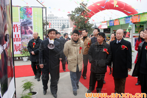 出席開幕式的領導參觀作品,并對本次作品展給予高度評價