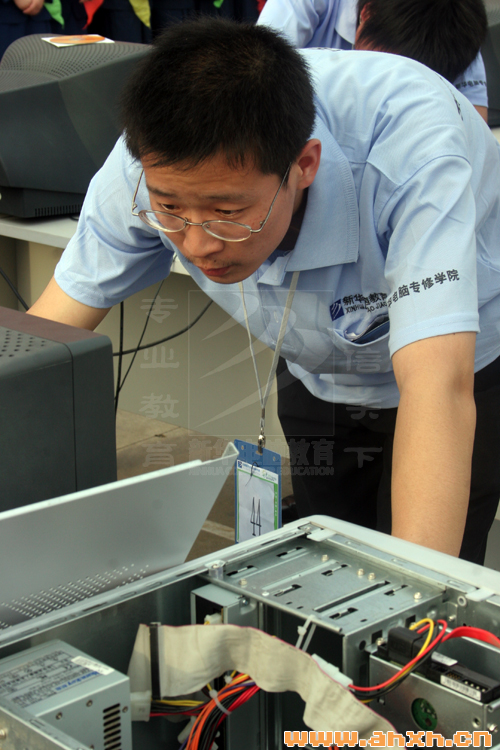 最終,來自安徽新華電腦專修學院大專部的9號選手路朋,以5分30秒的高速度和測試項目全部合格的綜合成績,贏得了計算機安裝調試大賽的第一名;院西區獲得了團體成績第一。