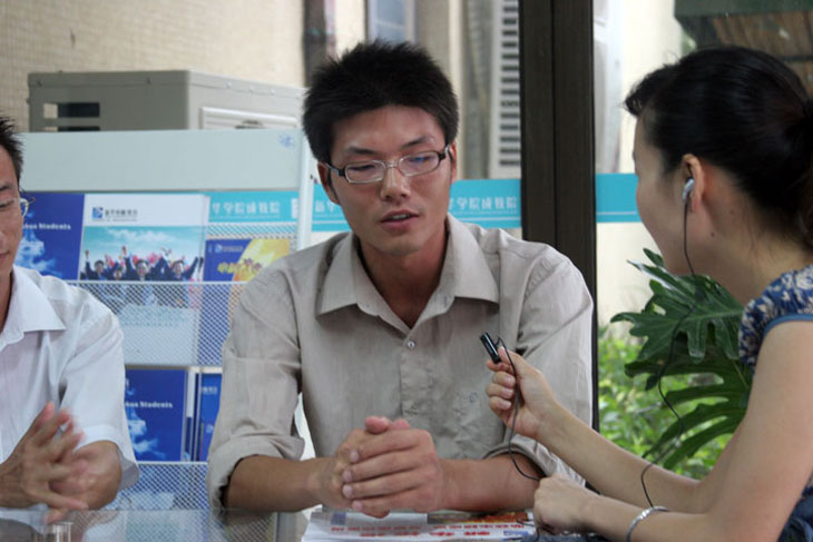 孔德軍正在接受記者的采訪,對未來的工作和生活充滿了信心
