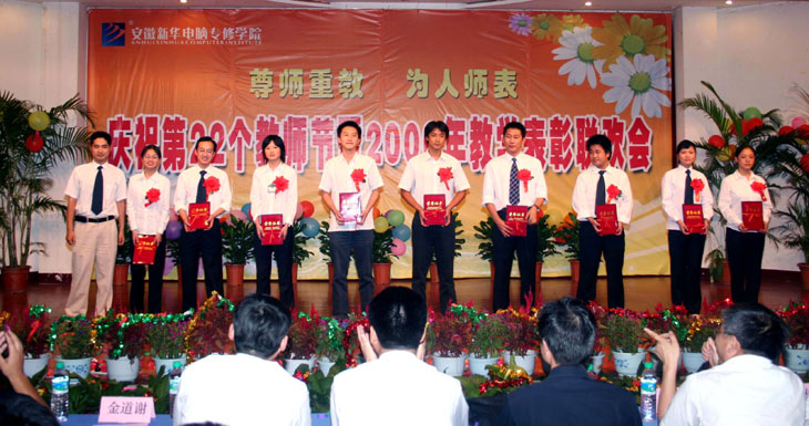 又是9月,中國第22個教師節踏著輕盈的步子緩緩而來, 為了慶祝這個人類靈魂工程師的節日,安徽新華電腦專修學院老師共聚一堂,以聯歡晚會暨教學表彰大會的形式度過了這個具有特殊意義的節日。
