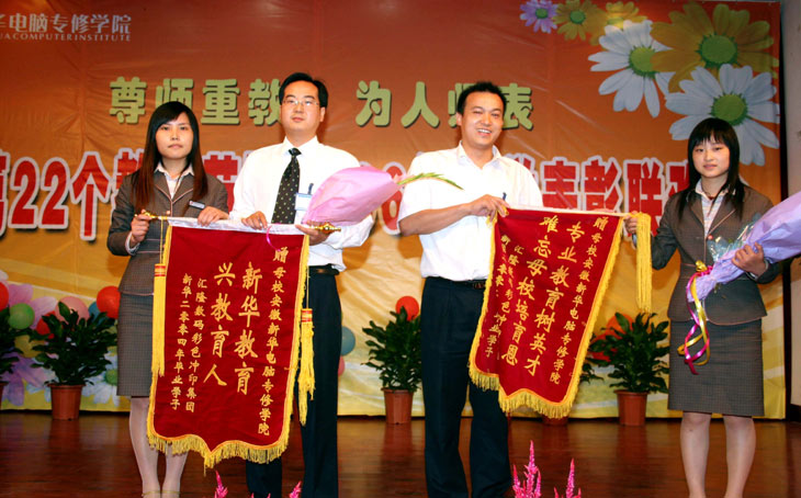 九月金秋,老師是這個季節的主題,新華的空氣中,彌漫著感念師恩的情緒,尊師重教是永遠的美德,從18年前新華電腦專修學院的誕生,到如今的輝煌,新華人走得堅定,昂然;從蒸蒸日上的教學業績,到形式多樣的綜合素質培養,新華人做得敬業、勤肯;從精彩紛呈的專業技能比賽到寓教娛樂的文明上網,新華人教得認真、靈活。教師節的一路歡歌,拉近了新華每個人的心,也讓愛充滿了新華每個角落。