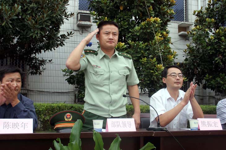 部隊領導向老師和同學們行禮