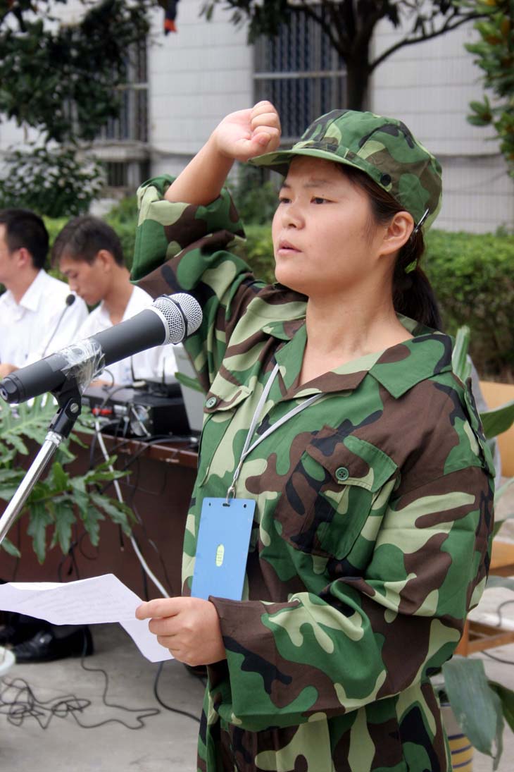 動員大會上,新生們統一著綠色軍裝,將西區、南區的軍訓場妝扮得如此青春,雖是第一次參加軍訓,可是他們整齊的站姿和認真的神情,讓人們切身的感受到他們“流血流汗不流淚”的決心。來自武警安徽總隊合肥支隊的教官們表演了各種標準化軍姿和軍體操,讓同學們大開眼界,同學們熱情的掌聲,表達了他們對教官的崇敬之情。