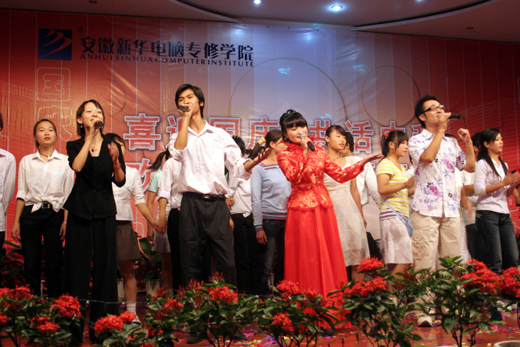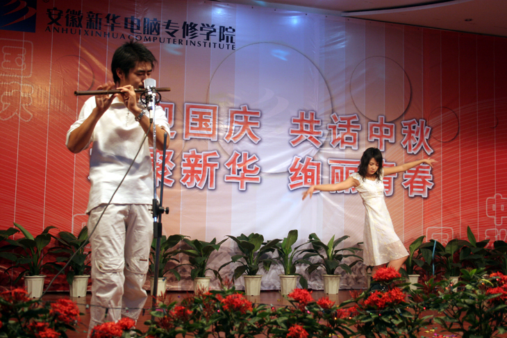 晚會上,安徽新華電腦專修學院何揚總監用詼諧幽默的語言,鼓勵同學們要多參加這種文藝晚會,充分發揮自己的各種特長,做全面發展的新華人。