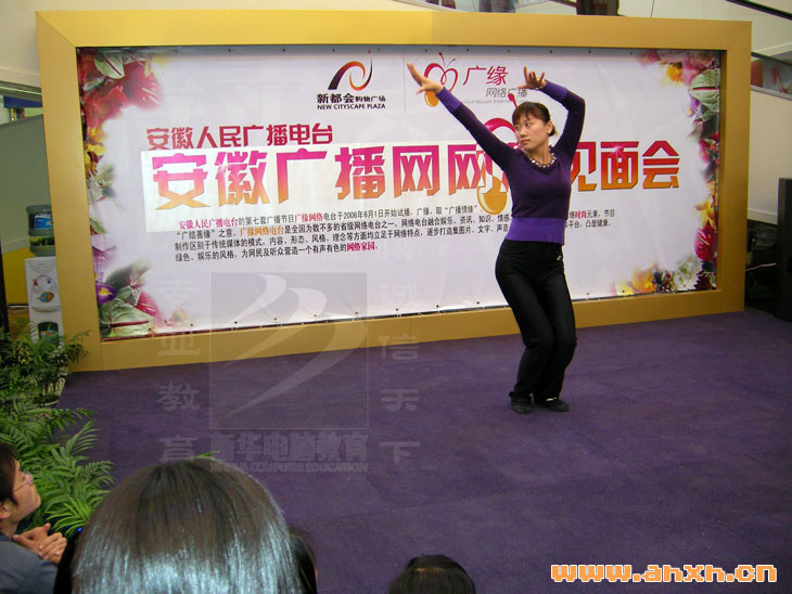 安徽新華電腦專修學院年輕的老師和學子們也應邀來到活動的現場,與妙語連珠的DJ和廣播網各版網友們同臺獻藝。主詩人宇航的一曲《夜半彎》深情款款;網友自創的歌曲《蝶離飛》曲風優美;三位美女網友共同演繹的《不想長大》輕松活潑;安徽新華電腦專修學院的