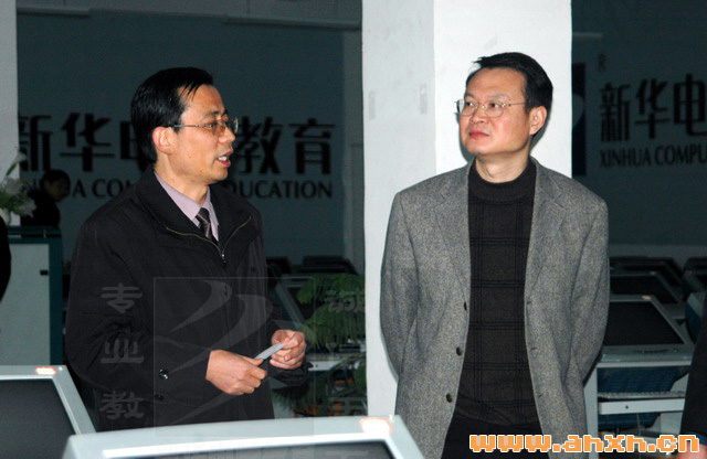 院領(lǐng)導(dǎo)向省教育廳、寧波市教育局領(lǐng)導(dǎo)介紹新華電腦教育