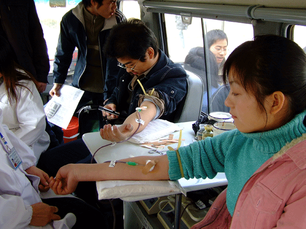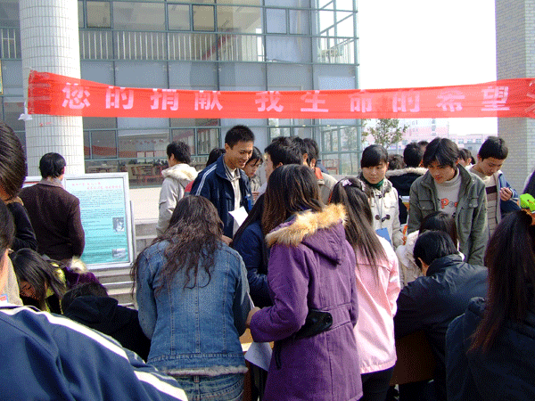活動現揚,人頭攢動,體檢驗血處排起了長隊,同學們獻血的熱情感染了更多的人加入到獻血的行列中。為了緩解醫療人員的壓力,學生會成員積極加入到服務的行列中去,他們配合醫生做好引導、表格發放、發放驗血證等工作,為同學們細心的解答疑問,幫助同學更有序、更快捷的完成獻血過程,努力為義務獻血的同學營造舒適、愉悅的獻血環境,解除他們的后顧之憂。同時,他們自己也踴躍的加入到獻血者的隊伍中去,起到了模范帶頭作用。