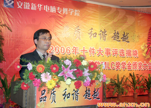 安徽新華電腦專修學院常務副院長蘇凱鈞在大會致辭中說, 2006年對于新華教育集團來說是品質教育的一年,是碩果不斷的一年,更是輝煌的一年!在過去的一年中,新華電腦教育正式入駐北京中關村,率先在行業內推出教育品質化要求;連續四年被評為“國家信息化教育全國示范教育基地”;被新浪網、搜狐網和《中國青年報》、《中國教育報》等知媒體評為“2006年度十大影響中國IT教育機構”和“最具就業競爭力20強職業院校”;安徽新華電腦專修學院承辦和組織教師參加全國計算機職業技能大賽并載譽而歸、首家在北京中關村建立軟件人才“實訓工場”;“亞洲職業教育發展論壇”新華發展模式成為與會者關注和研究的焦點……在過去的一年中,中國IT教育全面質量管理體系——新華521培英計劃全面實施,開創電腦教育品質化新時代;畢業生就業安置率位居行業前列并獲中國就業促進會、中國職工教育與職業培訓學會會長林用三高度評價。所有這些成就都是與政府各級領導和社會各界的支持分不開的,也是全體新華人團結奮進、銳意進取的價值呈現。