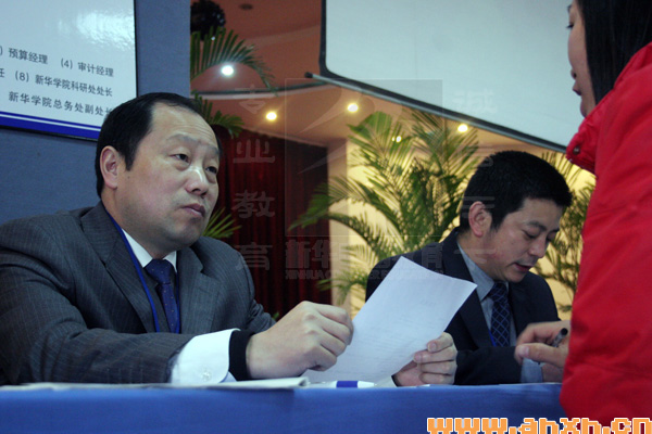 3月18日,新華集團2007年春季大型人才招聘會在新華電腦專修學院盛大召開。本次招聘面向管理、房產營銷、工程技術、教師、文職以及后勤等50多個崗位,新華集團、新華教育集團以及所屬單位新華房產、天一物業、安徽新華電腦專修學院、安徽新東方烹飪專修學院、安徽新華中專學校分別設立招聘展位。集團公司領導、副總經理王永凱等集團高層領導親自出席并主持復試。從上午八點至目前,共吸引1200多名前來面試的各類人才參與角逐。