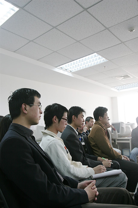 在學(xué)生的實(shí)訓(xùn)課堂,李小霞副總裁,何揚(yáng)總監(jiān)召集大家進(jìn)行了座談會。會上,許多同學(xué)詳細(xì)描述了在軟件園半個月來的實(shí)訓(xùn)感受,他們均表示在軟件園的半個月中他們對軟件工程有了詳細(xì)了解,在項(xiàng)目實(shí)踐的過程中感受到了團(tuán)隊(duì)協(xié)作的重要性,也提出了一些內(nèi)心的感受,和對實(shí)訓(xùn)的建議。李小霞副總裁和何揚(yáng)總監(jiān)詳細(xì)回答了學(xué)生們的問題,并一一記錄。