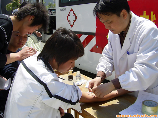 在體檢和采血現(xiàn)場,同學們積極踴躍,獻血熱情高漲, 獻出自己的熱血,給予需要幫助的人們,這是每位在場參加愛心無償獻血的新華學子的共同心聲。所有參加獻血的學生,自覺地排起長隊,遞上無償獻血的表格,有序地進入采血現(xiàn)場,坐在椅上平靜地伸出手臂,顯得坦然而輕松。
