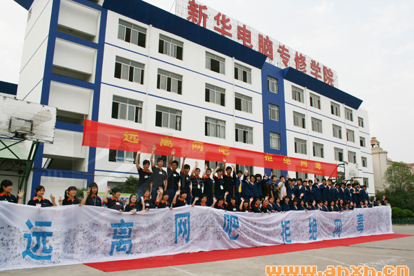 安徽新華電腦專修學院西區舉辦了 “遠離網吧,拒絕網毒” 大型千人簽名儀式