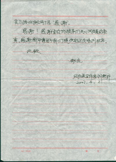 鳳臺(tái)縣參訓(xùn)教師感謝信原件